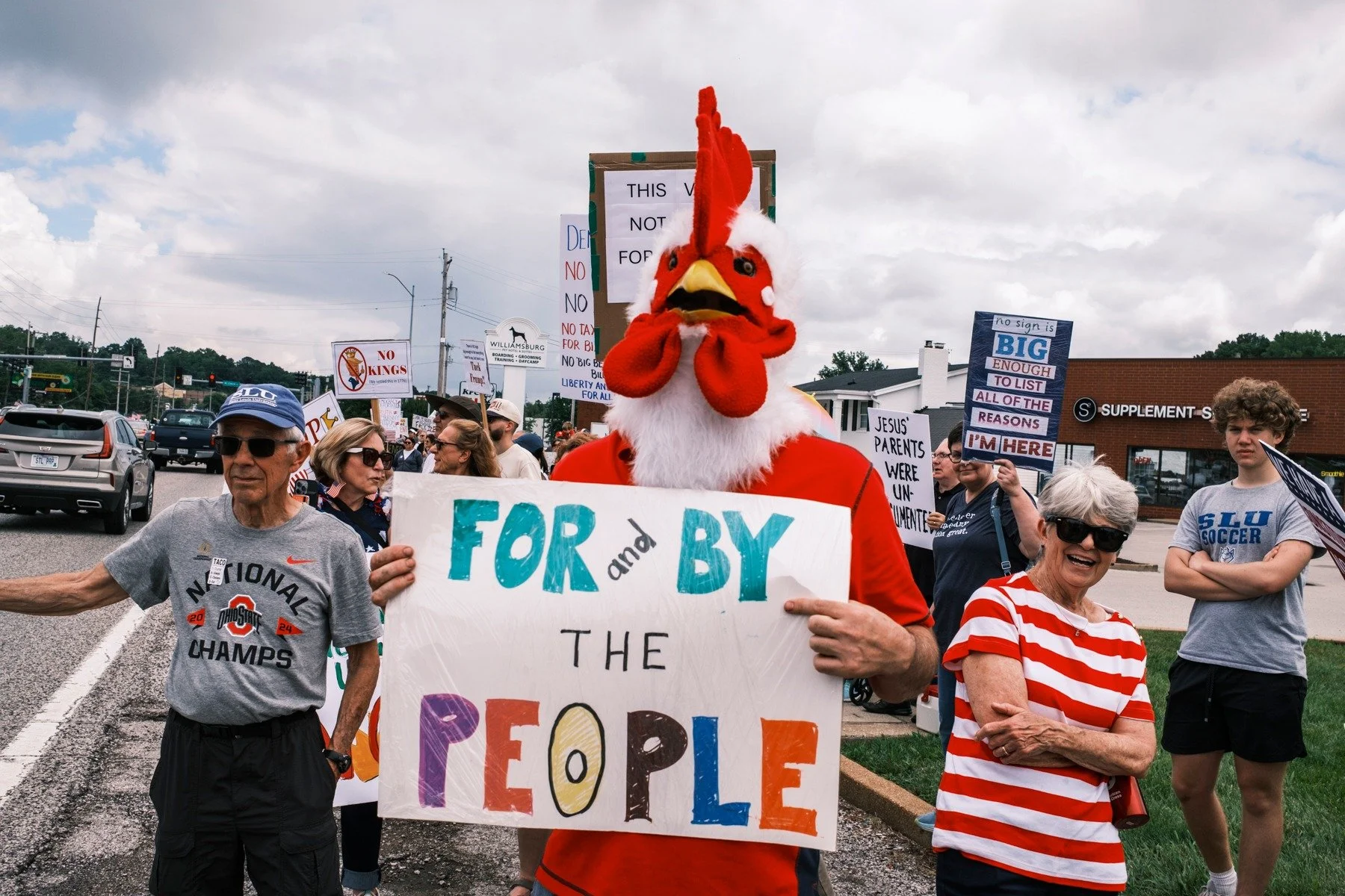 The South St. Louis County protest is hosted by Chad Bernstein, the founder of SoCo STL Resistance and a leadership partner for Indivisible St. Louis.